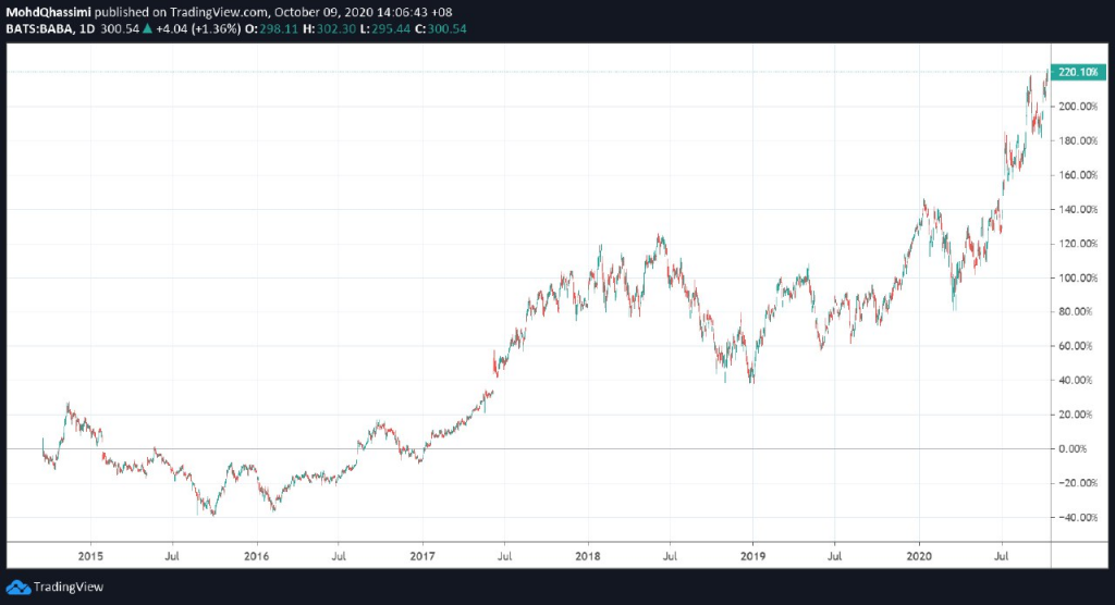 Namun Alibaba yang tersenarai di NASDAQ ini mampu memberikan pulangan sehingga 220% sejak awal penyenaraiannya pada tahun 2014. Menarik bukan?