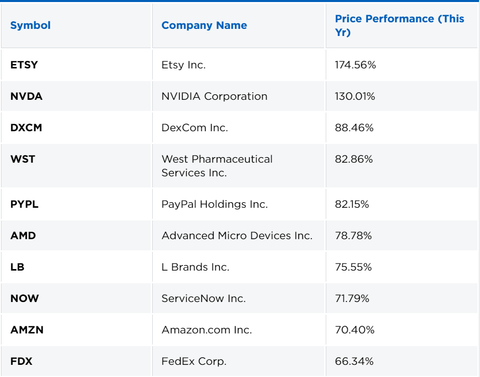 Namun begitu, masih terdapat saham-saham yang membuat keuntungan yang baik bagi yang mereka bijak mengambil peluang. Di sini kami kongsikan senarai 10 saham terbaik di S&P 500 dari Tarikh 1 Januari 2020 sehingga 1 Oktober 2020.