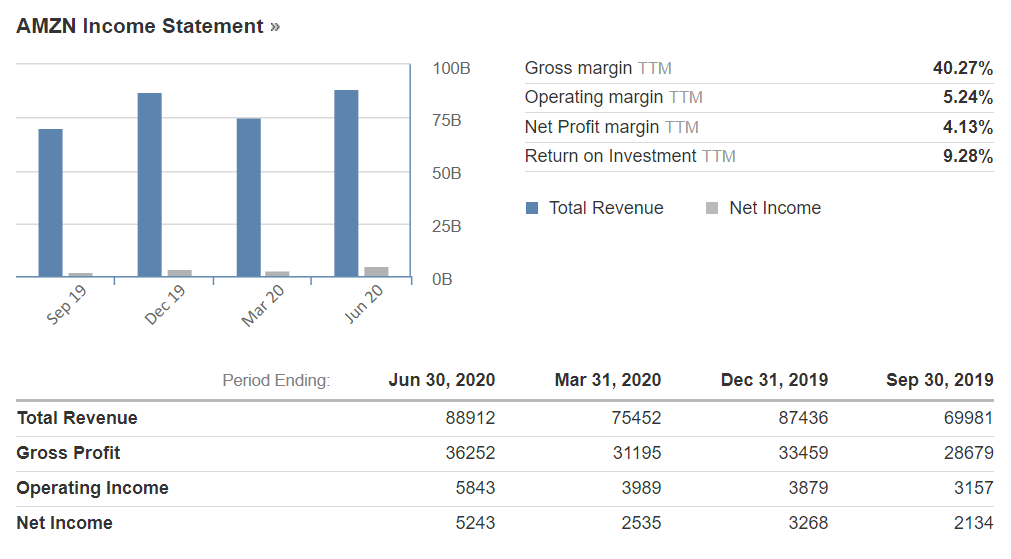 Setakat enam bulan pertama tahun 2020 yang berakhir 30 Jun 2020, hasil jualan Amazon.com Inc meningkat 34% kepada USD164.36 bilion. Pendapatan bersih Amazon pula menyaksikan Amazon telah meraih sebanyak USD7.78 bilion.