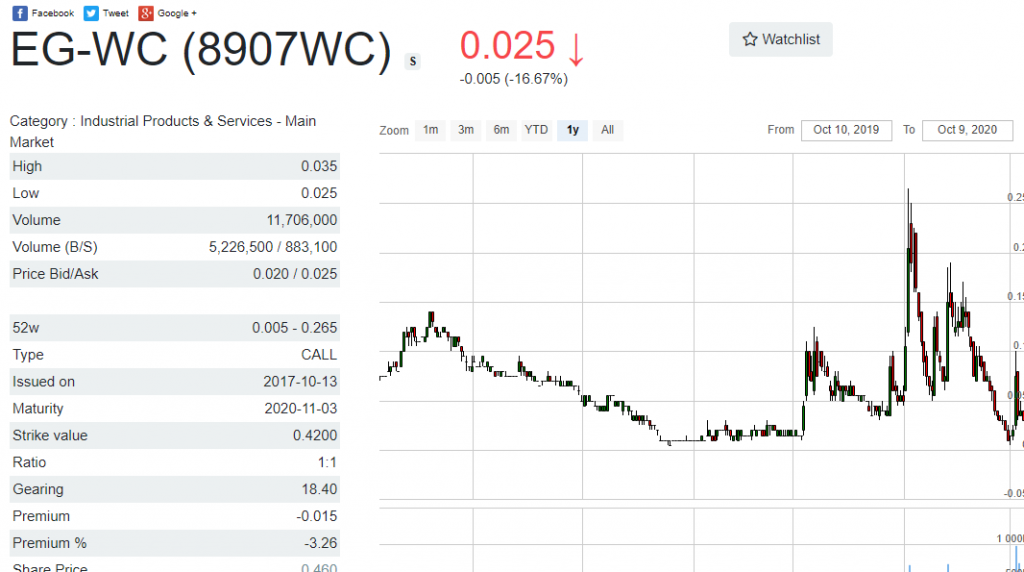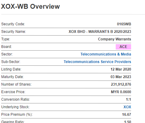 Laman web yang menunjukkan butiran berkenaan warrant ini (Sumber: klsescreener.com)
