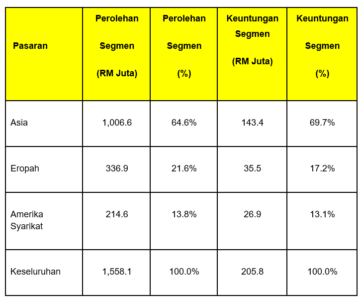 Baki perolehan sebanyak 35.4% daripada pasaran Eropah dan Amerika Syarikat.