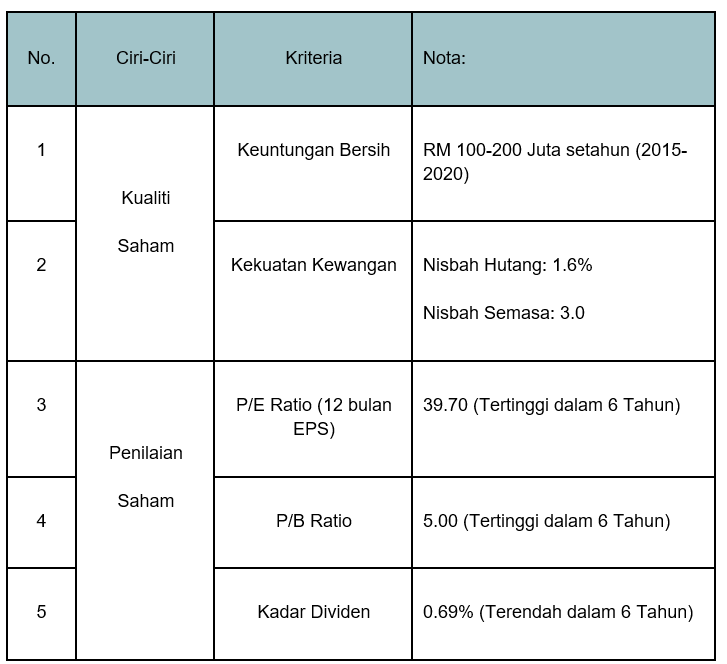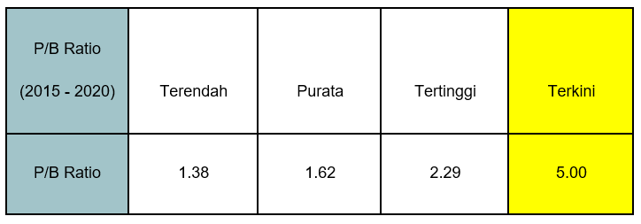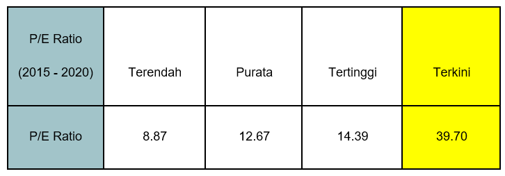 Kalau kita bandingkan dengan P/E Ratio lalu (2015 sehingga 2020), ia adalah tertinggi dalam 6 tahun tersebut.