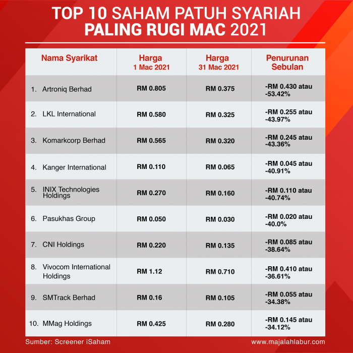 Nak tahu Top 10 Saham Patuh Syariah Paling Rugi Bulan Mac 2021?