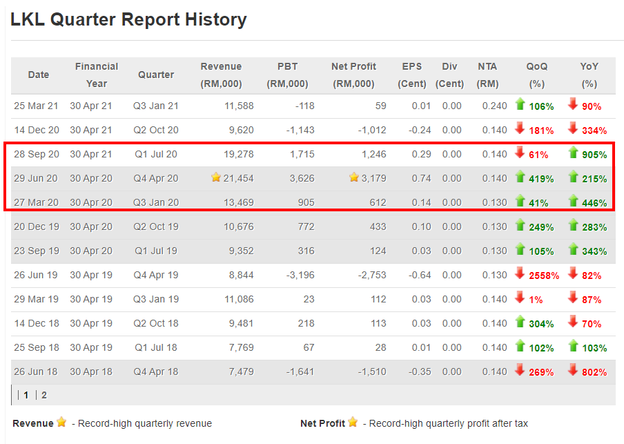 3. Bukan itu sahaja, suku keempat tahun 2020 merekodkan perolehan dan keuntungan bersih tertinggi yang pernah dicatatkan LKL bagi satu-satu suku tahunan.