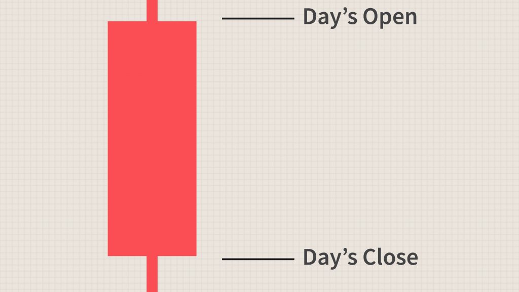 Candlestick merah terbentuk apabila harga penutupan (closing price) adalah lebih rendah berbanding harga pembukaan.