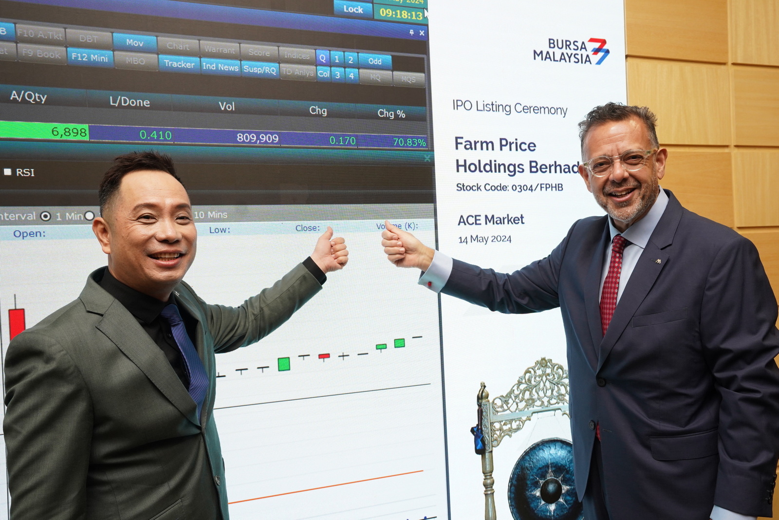 KUALA LUMPUR, 14 Mei (Bernama) — Farm Price Holdings Bhd membuat penampilan sulungnya di Pasaran ACE pada harga 48 sen hari ini, mencatatkan premium sebanyak 24 sen atau 100 peratus berbanding harga tawaran awam permulaannya (IPO) pada 24 sen.