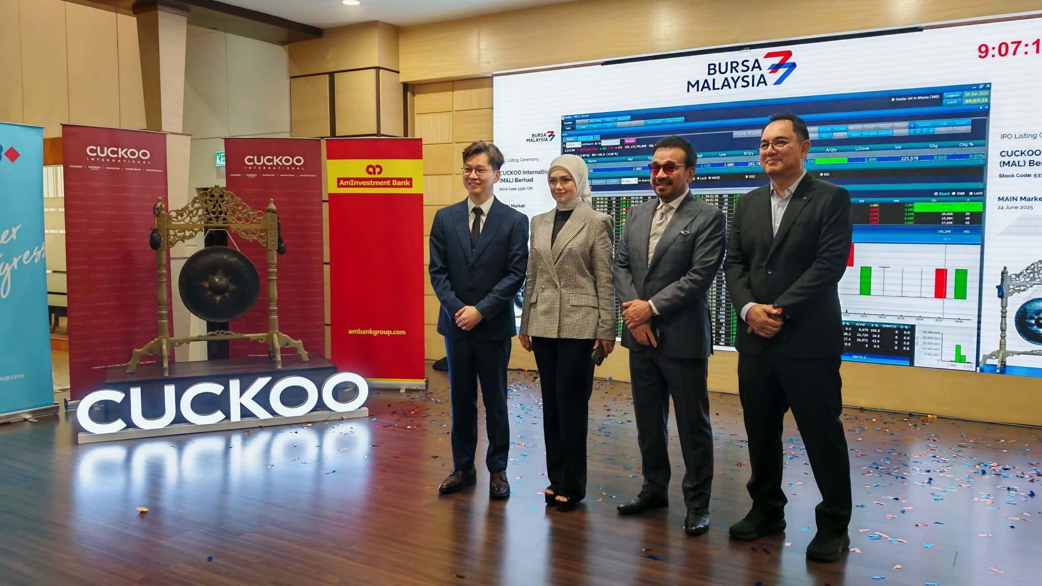 KUALA LUMPUR, 24 Jun — Cuckoo Malaysia membuat penampilan sulungnya di Pasaran Utama Bursa Malaysia pagi ini pada RM1.09 pada premium satu sen daripada harga tawaran awam permulaan (IPO) RM1.08, dengan 15.33 juta saham diniagakan.