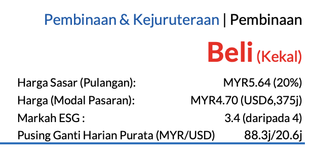 - Harga sasar (TP) RM5.64 berdasarkan kaedah SOP