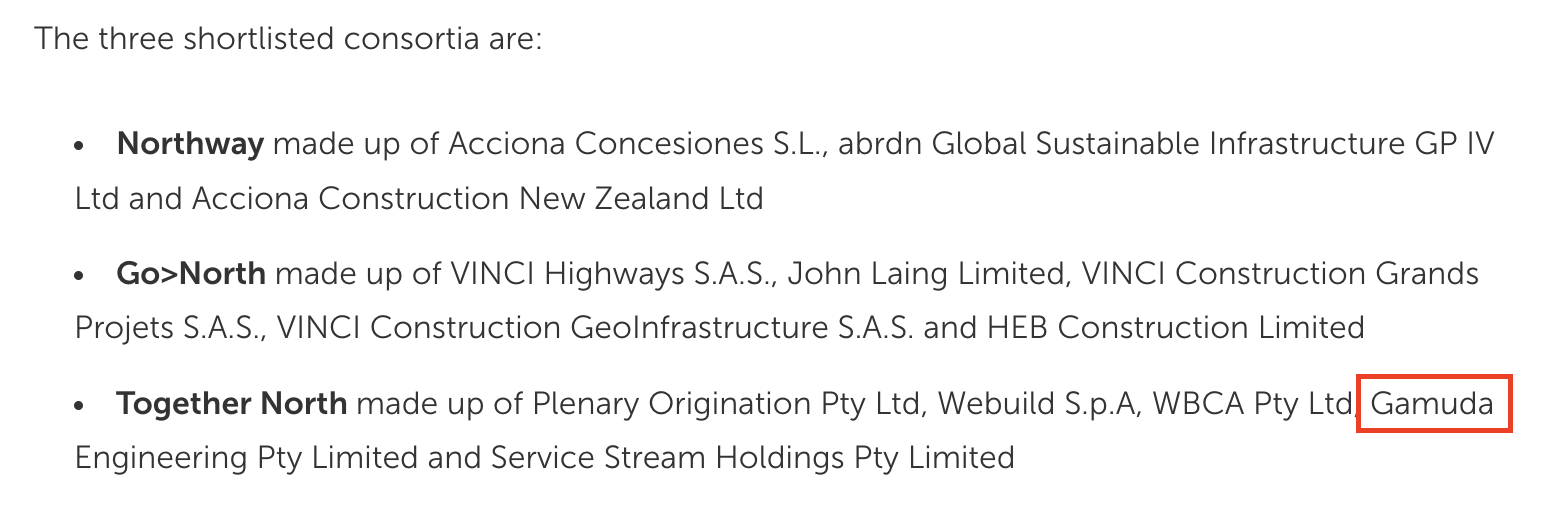 - Disenarai pendek untuk projek lebuh raya Northland Corridor (NCH) di New Zealand