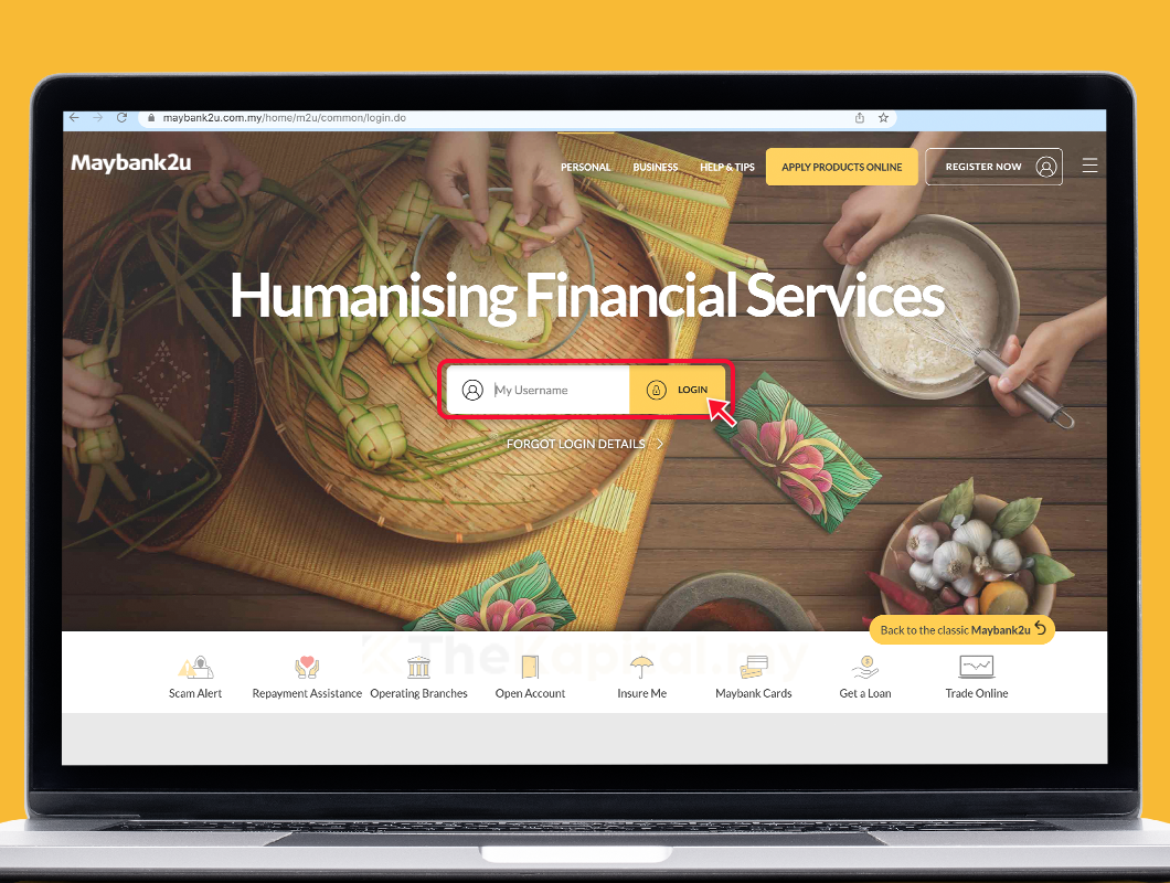 Langkah pertama sekali yang perlu anda buat adalah dengan login ke akaun Maybank anda dengan memasukkan username dan password yang anda tetapkan.